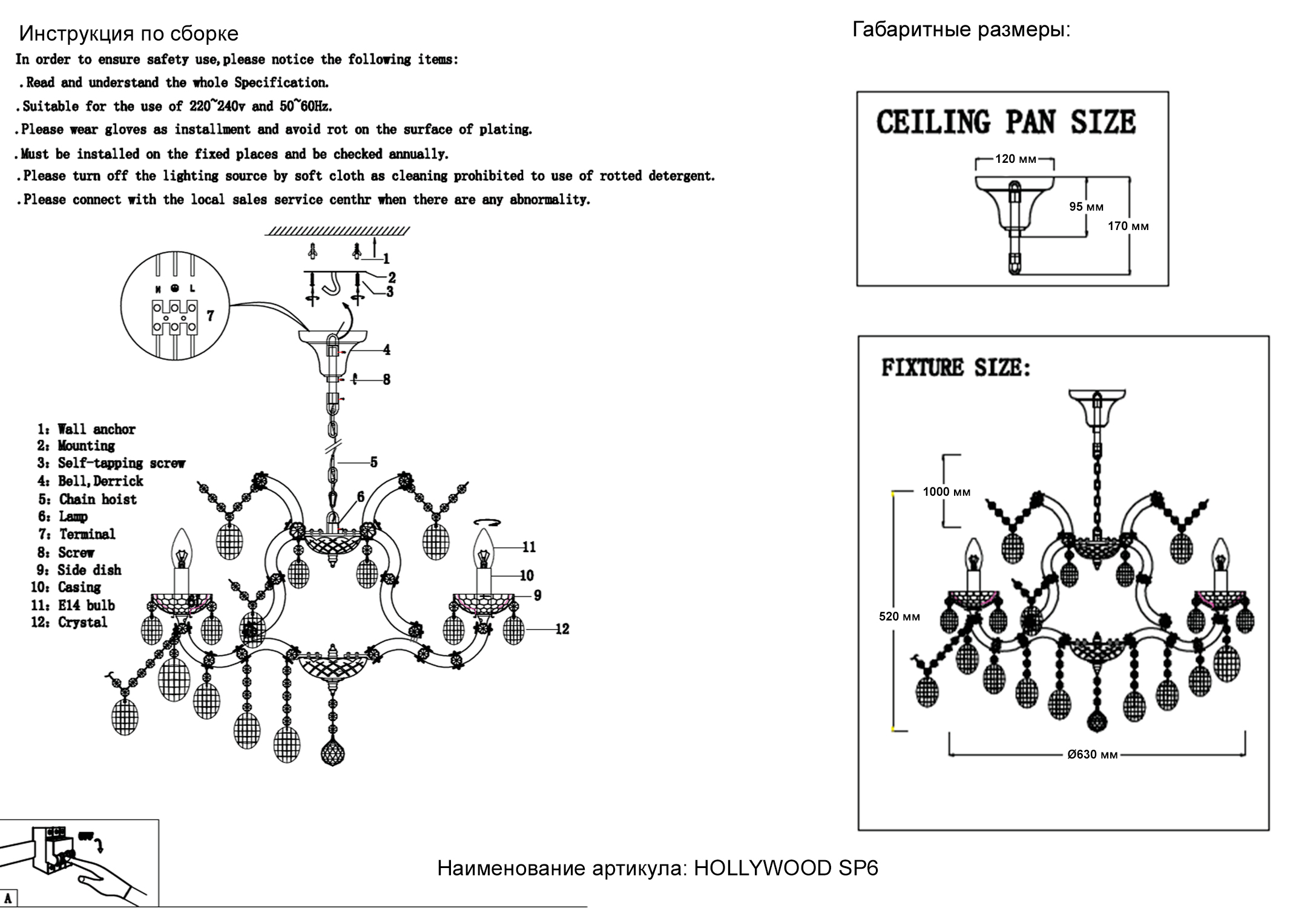Люстра Crystal Lux HOLLYWOOD SP6 CHROME 2010/306