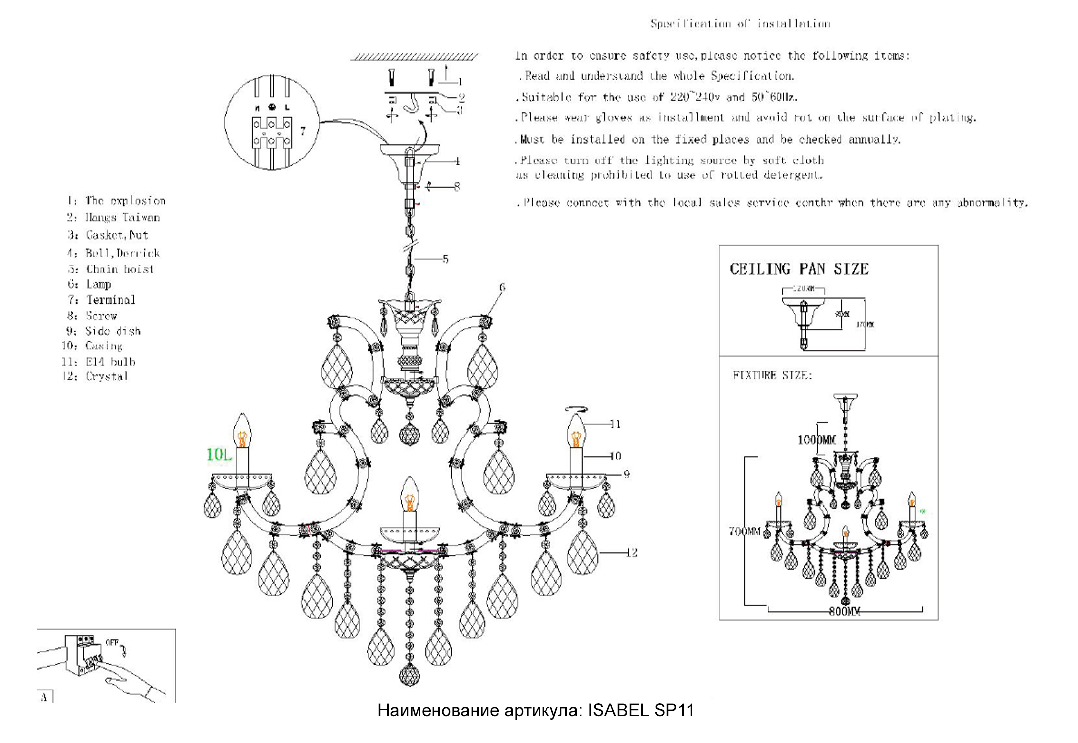 Люстра Crystal Lux ISABEL SP11 GOLD/TRANSPARENT 2080/311