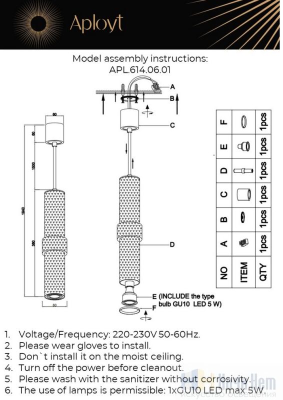 Светильник подвесной Aployt Beasia APL.614.06.01