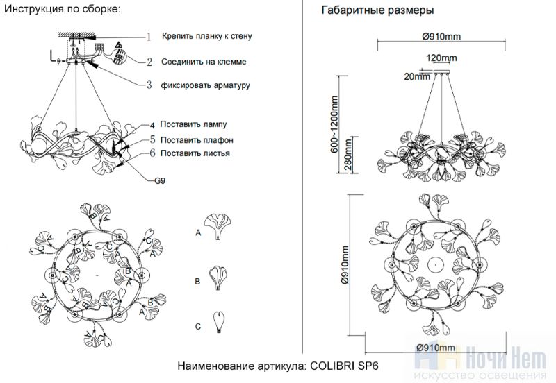 Люстра Crystal Lux COLIBRI SP6 GOLD 0141/306