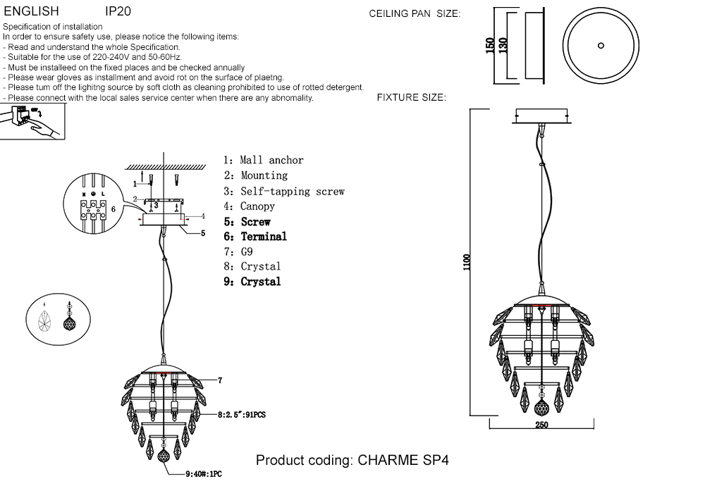 Люстра Crystal Lux CHARME SP4 CHROME/TRANSPARENT 1373/204
